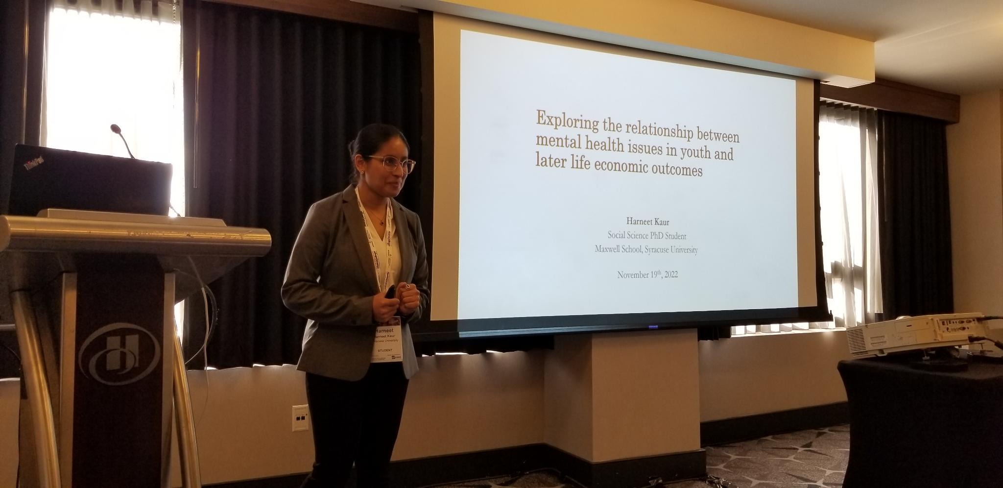 This November I got a chance to present my ongoing work titled “Exploring the relationship between mental health issues in youth and later life economic outcomes” at the 2022 APPAM Fall Research Conference held in Washington D.C. It was very enriching to be able to exchange ideas and meet with so many great minds in the policy research field. Not only did I get feedback on the work that I was presenting there, but I also got a lot of new ideas to pursue and some new perspectives for my other work in progress which is about out-of-school student suspensions. In a nutshell, it was an exhilarating and wholesome experience for a PhD student like me.